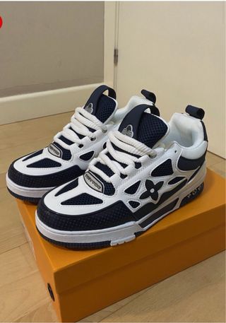 Zapatillas Louis Vuitton modelo Skate en color azul marino y blanco. Se encuentran en perfecto estado. - Diseño deportivo y moderno. - Detalles de la marca visibles. - Llavero y calcetines Nike de regalo.
