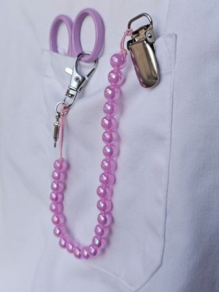 Portatijeras Enfermera, estilo enfermera en apuros: •Cordón elástico doble. •Mosquetón de metal para las tijeras o pinzas con charms. •Agarre de clip para colocar en el pijama/uniforme. Enfermera, enfermeria, TCAE, veterinaria , laboratorio , celador , celadora , tecnico , tijera , tijeras , portatijeras , buscatijeras , diagnostico , imagen , histologia , enfermera en apuros , correa, lanyard, jeringuilla jeringa llavero