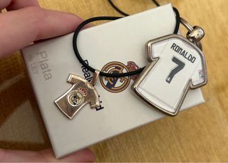 Conjunto de llavero y colgante conmemorativo del Real Madrid. - Fabricados en plata de ley. - Diseño inspirado en la equipación del equipo.