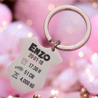 Llavero personalizado con forma de body, ideal para recordar los datos de un bebé. Es un detalle único y especial. Material: Acero inoxidable. Colores Disponibles: Dorado, Plateado y Oro Rosa. El precio es por unidad, no por los 3 colores juntos.