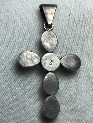 Cruz de plata de ley con su punzón de 925 en el reverso y turquesas engarzadas, perfecta para poner en una cadena, muy bonita pieza Regalo además un fósil de diente de Otodus Obliquus el antepasado del Megalodón Entrega en mano en Málaga o envío a toda España. Más lotes similares en mi perfil *No mirar* Monedas antiguas, numismática, lote monedas de plata coleccionismo pesetas duros oro antiguas moto circular limpiar subasta oportunidad moneda chimenea cadena metales sellos llaveros fósiles militar coche piso fusil guerra civíl pieza garaje puerta navidad lluvia pc blackfriday ar