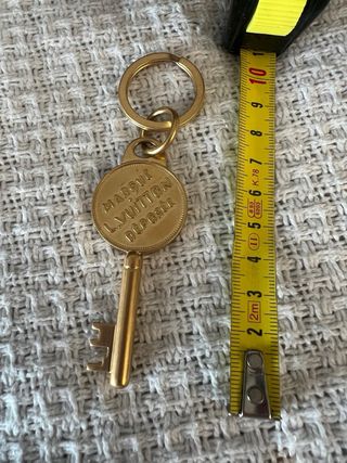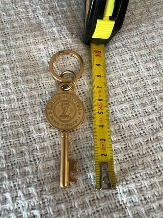 Este es un llavero con forma de llave de Louis Vuitton. - Diseño de llave. - Acabado dorado.