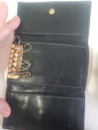 Elegante juego de pitillera y llavero de la marca El Potro en piel. Los artículos son de color negro y presentan un diseño clásico y sobrio. - Pitillera con cierre de cremallera - Llavero con espacio para varias llaves. - Material de piel de tacto suave.