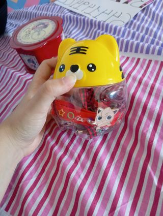 Tarro de joyería misteriosa con forma de tigre amarillo - Incluye varios accesorios en su interior como pendientes , collares , pines y llaveros