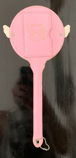 Precioso llavero con forma de varita mágica de Sakura Card Captors. Es de color rosa y amarillo, y tiene un diseño muy bonito. - Lleva una estrella amarilla en el centro. - Incluye unas pequeñas alas a los lados. - Tiene una cadena para colgarlo.
