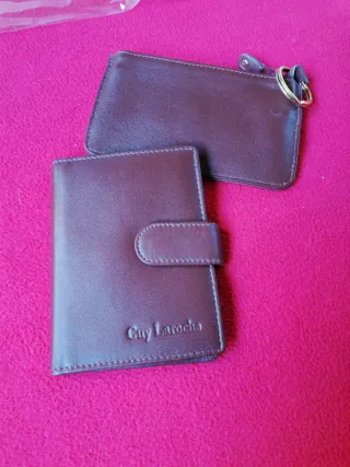 Conjunto de tarjetero y llavero de la marca Guy Laroche. - Tarjetero con cierre de botón. - Llavero con anilla dorada. Totalmente nuevo.