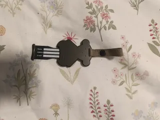Este llavero con forma de oso es un accesorio divertido y práctico. - Diseño de oso. - Correa de cuero. - Compartimento para datos personales.