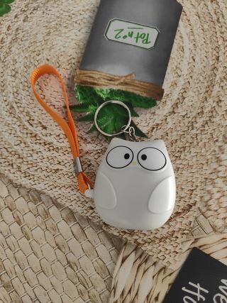 Dispositivo de alarma personal en forma de búho, ideal para llevar en el llavero. Es pequeño y ligero. Emite una alarma de 130dB.