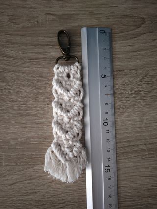 Preciosos llaveros hechos a mano con la técnica de macramé. Ideales para regalar o para uso personal. Son de color beige y blanco, con flecos. - Lote de 15 llaveros. - Diseño elegante y artesanal. - Material: hilo de algodón. - Perfectos para añadir un toque boho a tus llaves. #regalosboda #recuerdosboda