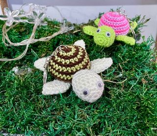 Llavero de tortuga hecho a mano con crochet. - Diseño único y artesanal. - Ideal para añadir un toque personal a tus llaves o bolso. - Personalizable 1 llavero --> 3€ 2 llaveros --> 5€