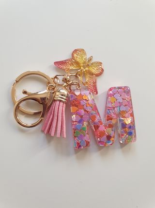 Bonito llavero con iniciales M Resina, bisuteria,colores rosas. Precio rebajado. Nuevo (resto de negocio cerrado) *No regateos *VISITA mi perfil,tengo muchas cositas y PUEDES CREAR UN LOTE de envio para pagar un solo coste. *Envio por wallapop o entrego en mano en Zaragoza