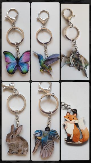 2€ la unidad.Bisuteria, acrilico. (Tambien disponibles gatos y perros) Dibujo por un lado, por el otro es negro con plástico protector. Nuevos *Cambio mucho los anuncios, si te gusta algo cómpralo o resérvalo antes de que lo quite! ;) *No rebajo más el precio en regateos. *VISITA mi perfil,tengo muchas cositas y PUEDES CREAR UN LOTE de envio para pagar un solo coste. *Envio por wallapop o entrego en mano en Zaragoza