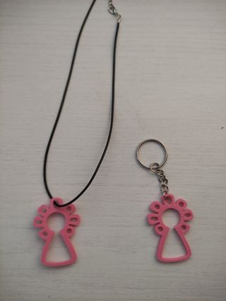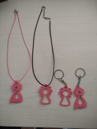 Preciosos llaveros y collares con la imagen de la Virgen del Pilar. Ideales para regalar o para uso personal. - Se incluyen dos llaveros y dos collares. - Los collares tienen cordones de diferentes materiales (uno de cordón rosa y otro negro). - Piezas delicadas y bonitas. -2€ collar y 2€ llaveros