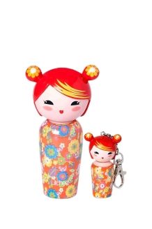 Un frasco original en forma de muñeca asiática, Kokeshi es a la vez un perfume y una muñeca para coleccionar. Este estuche contiene una eau de toilette Litchee de 50 ml Kokeshi by Jeremy Scott y su miniatura llavero de 5 ml. Notas olfativas: lichi, freesia y azahar. Formato: frasco vaporizador. A estrenar; en su caja precintada. Ideal para regalar.