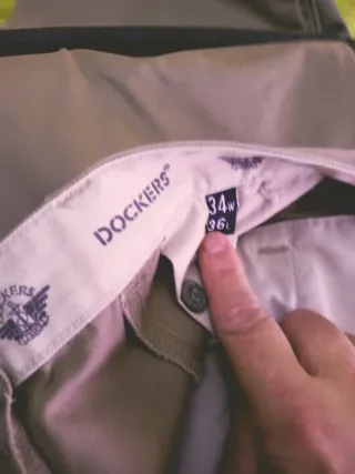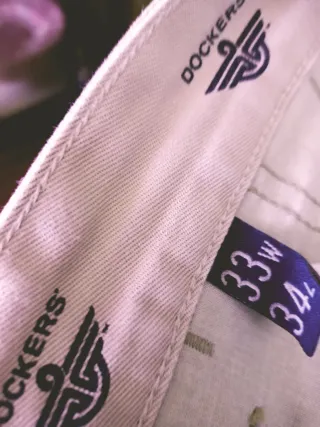 Pantalón chino juvenil de la marca Dockers. - Color beige. - Talla M (equivalente a 38-40 / 48-50). - Etiqueta interior con medidas 33W 34L.