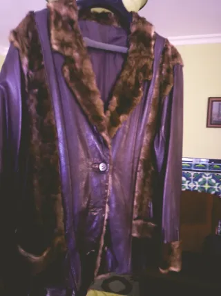 Elegante chaqueta de cuero marrón con un toque de estilo adicional. - Material principal: cuero. - Detalles de pelo en cuello, puños y solapas. - Cierre de botón frontal.