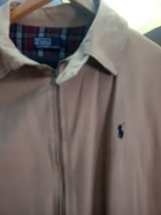 Cazadora estilo marca Polo Ralph Lauren en color beige. Presenta un forro interior a cuadros. - Logo de la marca bordado en el pecho. - Cierre de cremallera.