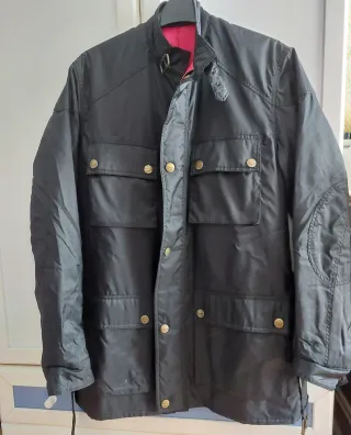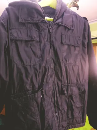 Abrigo de hombre de la marca Santander. - Cierre de botones y cremallera. - Cuello alto con forro polar. - Bolsillos laterales con solapa y botón. - Puños elásticos. - Cordón ajustable en el bajo.