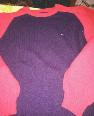 Jersey juvenil tipo Tommy Hilfiger,de lana color rojo y azul marino. - Combinación de azul marino y rojo. - Tejido de lana punto. - Cuello redondo clásico.