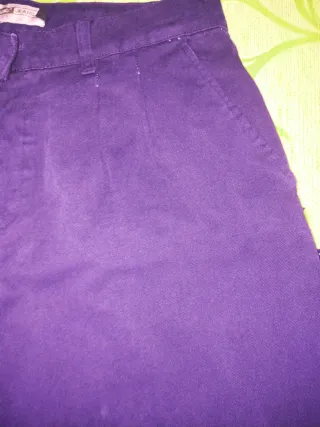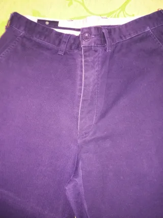 Pantalón chino de la marca Pull&Bear en color morado. Un básico versátil para cualquier ocasión. - Cierre de botón y cremallera. - Bolsillos delanteros y traseros. - Etiqueta de la marca en el bolsillo trasero.