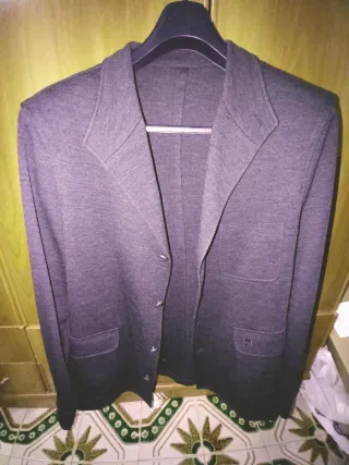 Chaqueta de lana para hombre, ideal para un estilo casual o formal. - Material: Lana. - Color: Gris. - Diseño de chaqueta. - Bolsillos frontales.