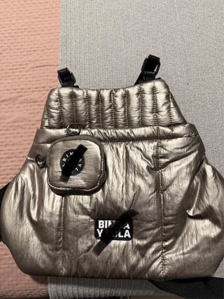 Mochila de la marca BIMBA Y LOLA con un acabado metalizado. - Diseño acolchado. - Bolsillo frontal con cremallera. - Detalle de logo circular en el bolsillo. - Parche con logo rectangular en la parte frontal.