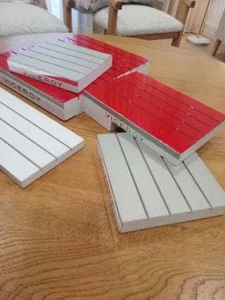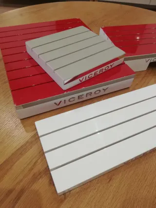 Lote de expositores de la marca Viceroy. - Diseño en color rojo y blanco. - Base con varias ranuras.
