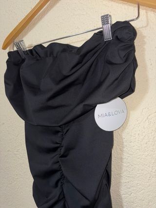 Vestido negro strapless fruncido
