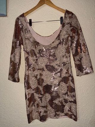 Vestido de lentejuelas marrón y dorado