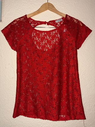 Camiseta roja encaje transparencias S