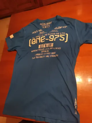 Camiseta de manga corta de la marca Jack & Jones talla XL - Color azul - Estampado frontal con el número 975 y texto DENIM