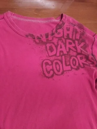 Camiseta de manga larga roja con un diseño gráfico en la parte delantera - Cuello redondo - Costuras exteriores visibles - Estampado con texto 'NIGHT DARK COLORS'