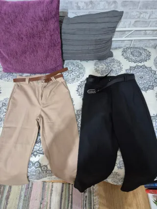 Pantalones de medio tiro con efecto ante. Estilo elegante, sofisticado, atemporal. Marca: Lefties Color: Beige / camello / arena Talla: S / 36 Medidas: aprox. (ver fotos) - Cintura: 33 cm - Caderas: 43 cm - Muslo: 22 cm - Ancho tobillo: 11 cm - Tiro delantero: 26 cm - Tiro trasero: 37 cm - Largo: 93 cm Material: 96% poliéster, 4% elastano - tejido suave, elástico con efecto aterciopelado Detalles: - Cierre con cremallera lateral oculta - Cremallera en los bajos - Tiro medio con goma en la cintura Estado: Perfecto, sin defectos. Descubre más prendas similares en mi perfil. Haz pack y ahorra en los gastos de envío.