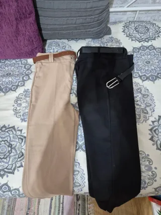 Conjunto de dos pantalones de vestir. - Pantalón de corte ancho. - Cinturón incluido en ambos.