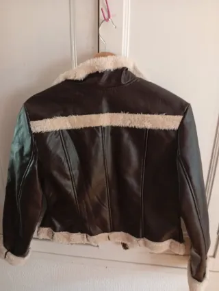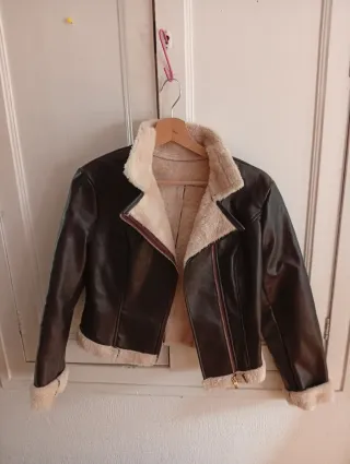 Chaqueta polipiel marrón con borreguito