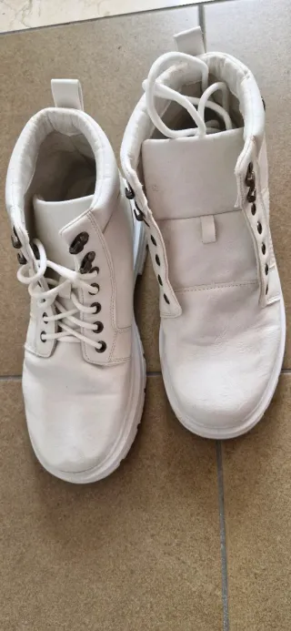 Botas de estilo casual en color blanco usadas una vez para una competición de baile en talla 44 (tallan grandes). - Cierre de cordones. - Detalle de trabilla en la parte trasera. - Suela gruesa. - Impermeables.