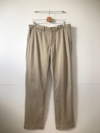 Pantalón chino clásico de hombre. Original, cómodo, atemporal. Muy versátil, tanto para look elegante como informal. Marca: Polo Ralph Lauren Color: Hueso / piedra / beige Talla: W34 L34 Comprobar medidas para asegurar el ajuste perfecto! Medidas: - Cintura: 45 cm - Tiro delantero: 30,5 cm - Tiro trasero: 42 cm - Ancho muslo: 33 cm - Ancho tobillo: 22 cm - Largo: 116 cm Material: 100% algodón Detalles: - Cinco bolsillos - Cintura con trabillas, cierre con cremallera y botón - Icónico logo de pony bordado en la parte trasera Estado: Perfecto, sin defectos Descubre más prendas similares en mi perfil. Haz pack y ahorra en el envío.