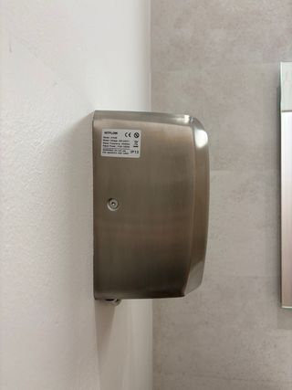 Secador de manos de diseño moderno y acabado brillante. - Material: Acero inoxidable. - Color: Plateado. 25,4x17,3x15 cm