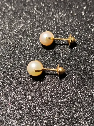 Pendientes con perlas cultivadas. 🔸Engarzado de cuatro patas 🔸Perlas 6mm de diámetro 🔸Cierre de roscado 🔸Oro de 18 quilates