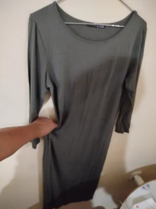 Vestido largo de manga larga en color verde oliva. Incluye un cinturón a juego. - Tejido elástico. - Diseño de corte recto. - Abertura lateral.