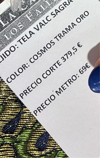 Tela de fallera azul y dorada