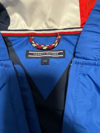 Chubasquero con capucha de la marca Tommy Jeans. - Diseño con media cremallera. - Detalle de logo en la manga. - Capucha con forro tricolor talla M o 176