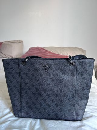 Bolso Guess en perfecta conservación, color negro/gris . Muy bien cuidado . Solamente tiene como se muestra en la foto , el asa un poquito desgastada , imperceptible por completo .