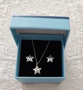 Conjunto Colgante y Pendientes Estrella de plata