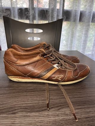 Zapatillas de cuero en color marrón. - Diseño deportivo. - Detalle de franjas en los laterales. - Logo del canguro distintivo de la marca.