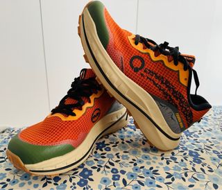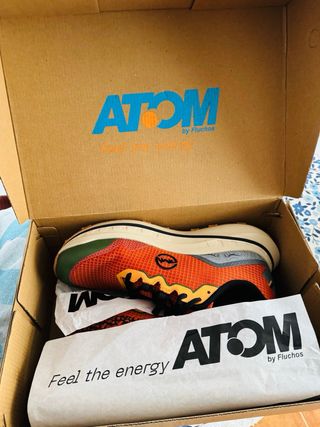 Zapatillas de trail running Atom Terra Max en llamativo color naranja. Diseñadas para ofrecer comodidad y rendimiento en terrenos irregulares. - Parte superior de malla transpirable. - Suela de goma con buen agarre. - Detalle de logo en el lateral. - Puntera reforzada.magnifica zapatillas trail, no las he podido utilizar por lesión.completamente nuevas. Me costaron 120€. Son unas zapatillas de un nivel superior