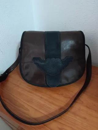 Bolso de mano de la marca Paco Tora. - Diseño tipo bandolera. - Combinación de piel marrón y detalles en negro. - Adorno frontal con relieve.