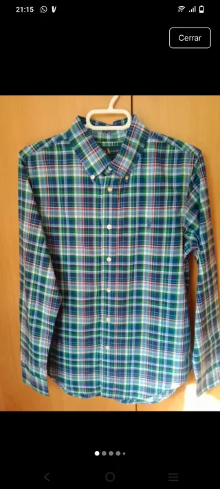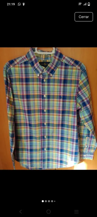 Camisa de manga larga con un diseño de cuadros vibrante. - Cuello abotonado. - Logo de la marca bordado en el pecho. Talla de 14 a 16 años