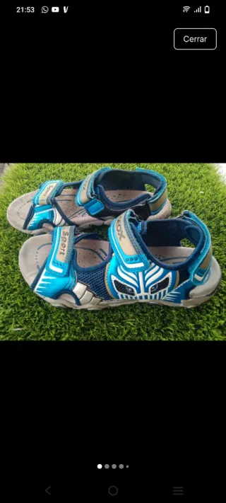 Sandalias Geox para niños en tonos azules y plateados. Perfectas para el día a día. - Cierre de velcro. - Suela de goma. - Diseño deportivo.