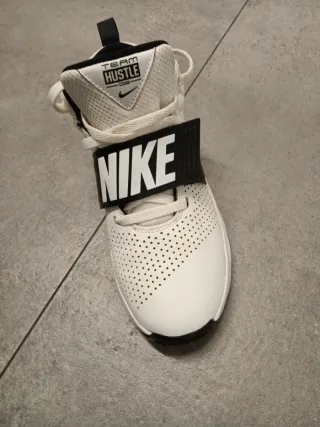 Zapatillas deportivas Nike con un diseño moderno y llamativo. Cómodos ...para hacer deporte.. baloncesto...andar ..etc. - Parte superior blanca con perforaciones. - Banda negra con logo Nike en el tobillo. - Detalle de swoosh negro en el lateral.